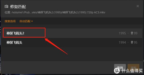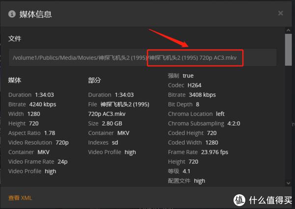 2)此时看到电影文件名称为 " 神探飞机头 2",明显与 plex 识别的不同。