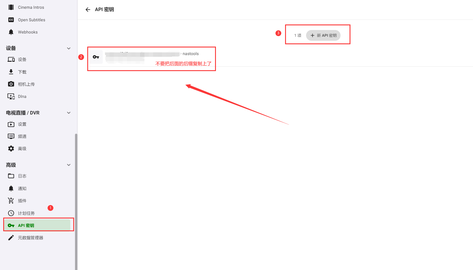 Key的获取方法:打开emby