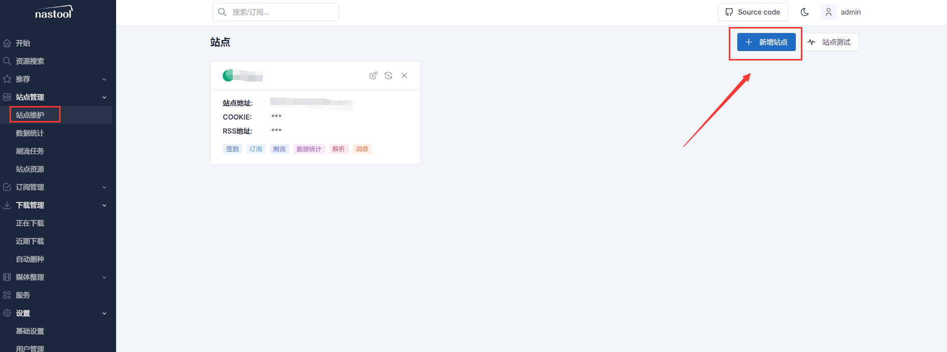 如果不需要用pt站,不出意外,就可以正常使用nastool了,如果需要用pt站就添加pt站点。