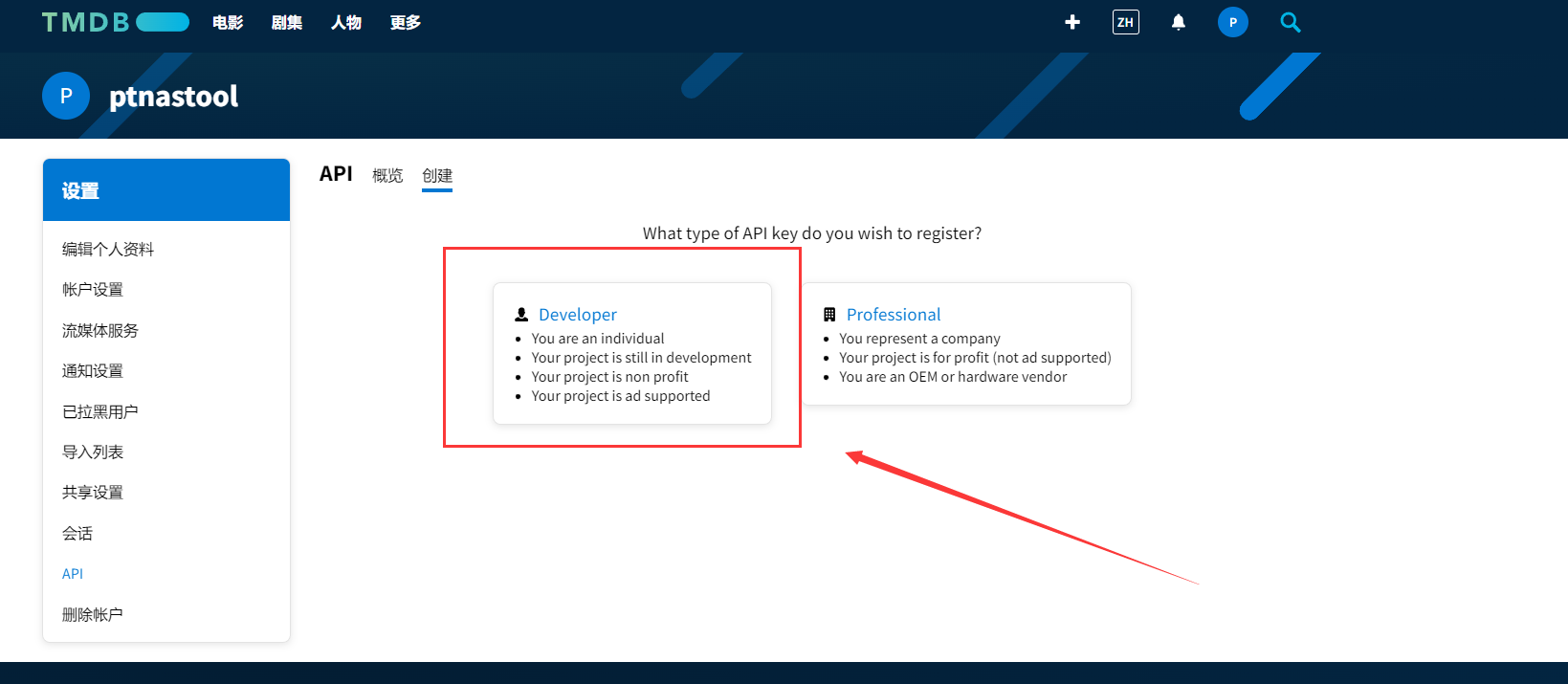 TMDB API Key的获取方法是