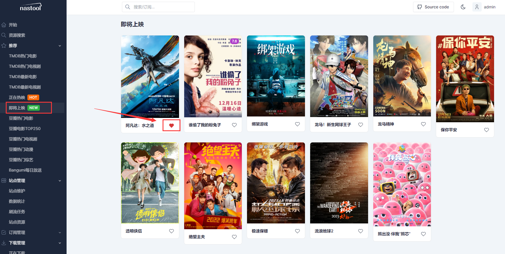 以后想下载最新电影,比如说阿凡达:水之道,我们订阅一下就行了,站点如果有下载就会自动下载并刮削海报添加到媒体服务器上。