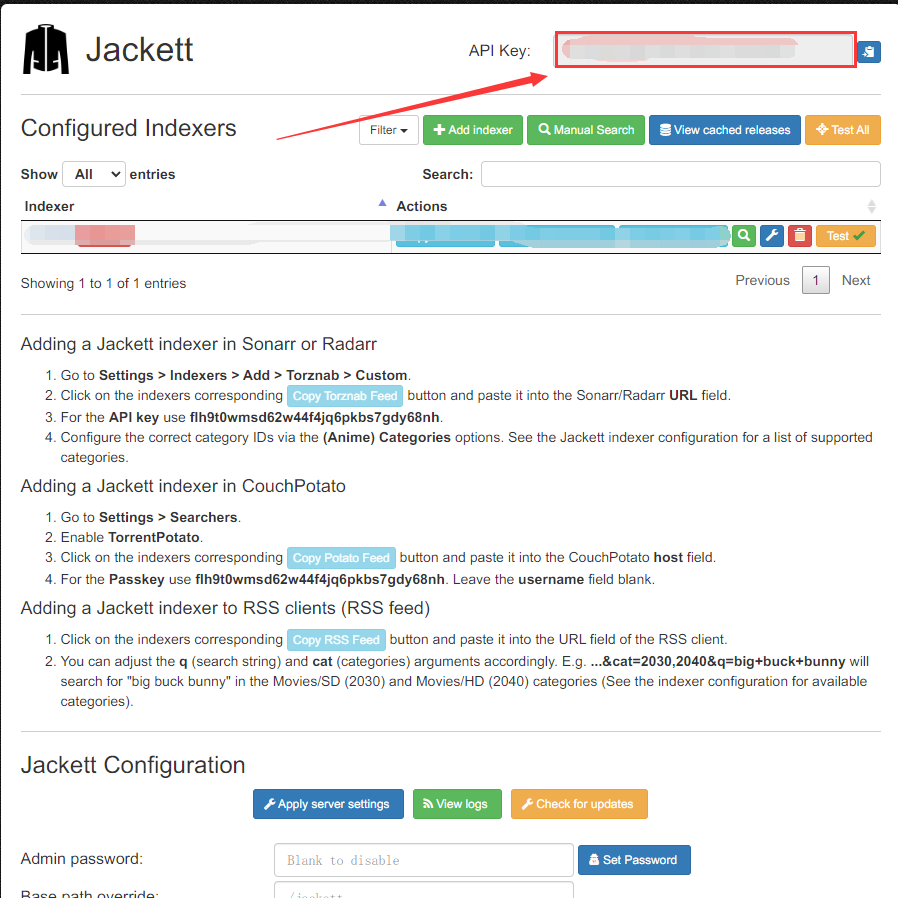 API Key的获取方法,首先打开jackett