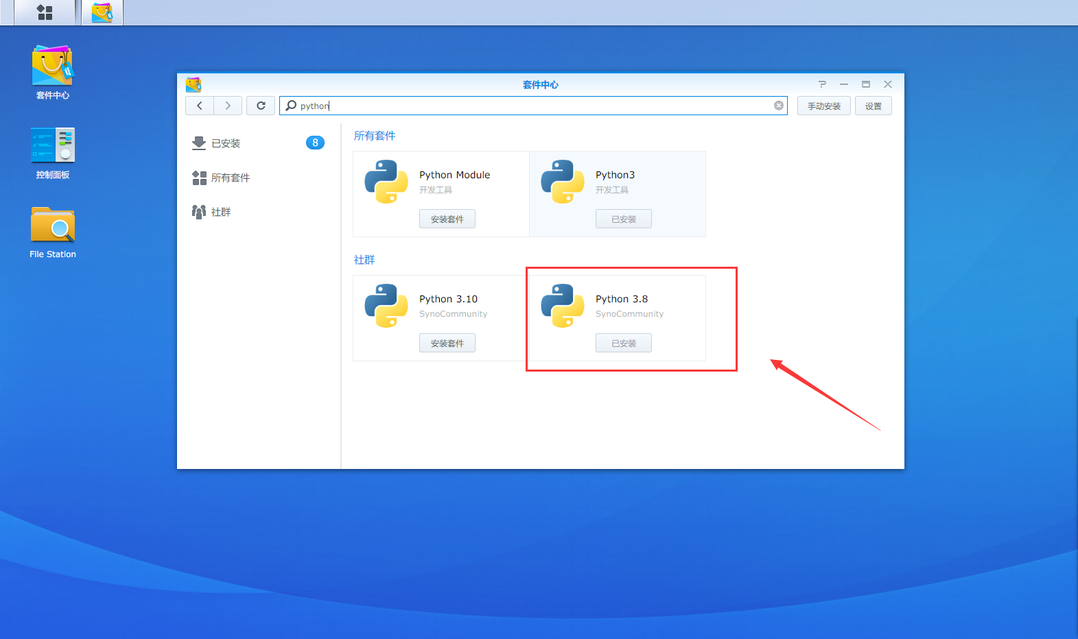 然后安装社群的Python3.8套件!Python3.8!Python3.8!Python3.8!重要的事情说三遍!