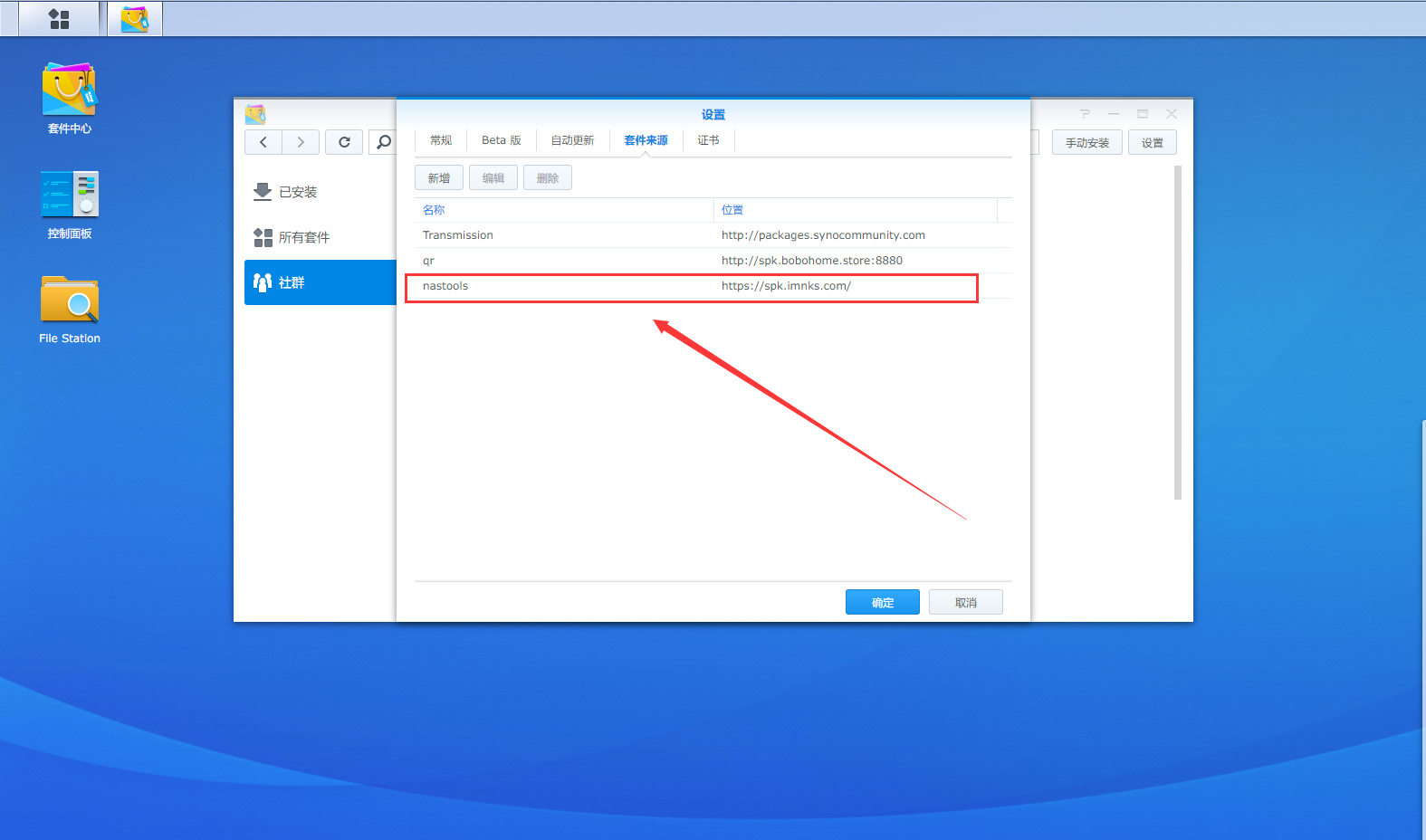 DMS 7X添加套件源网址https://spk7.imnks.com/