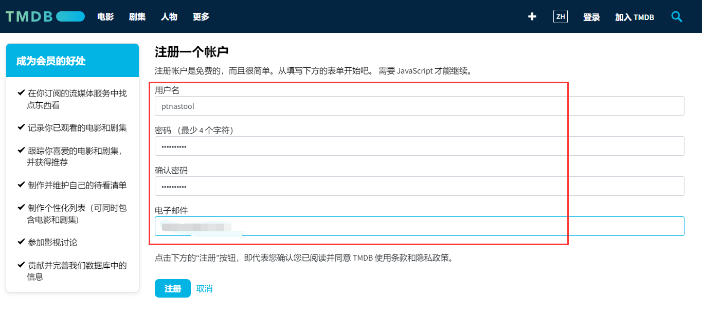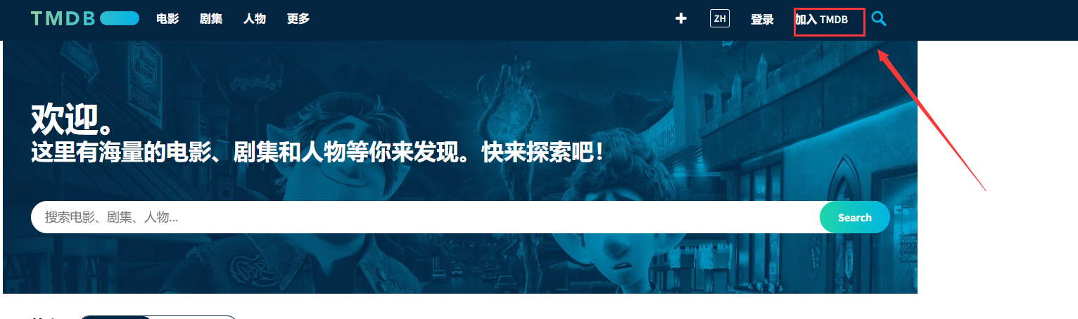 1、打开TMDB的主页注册
