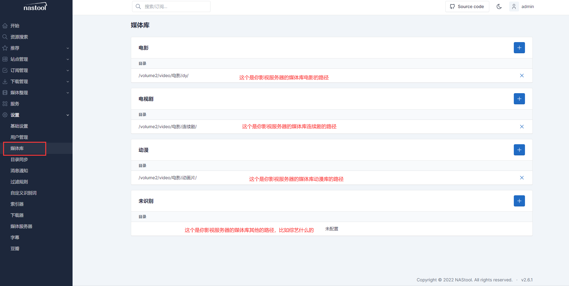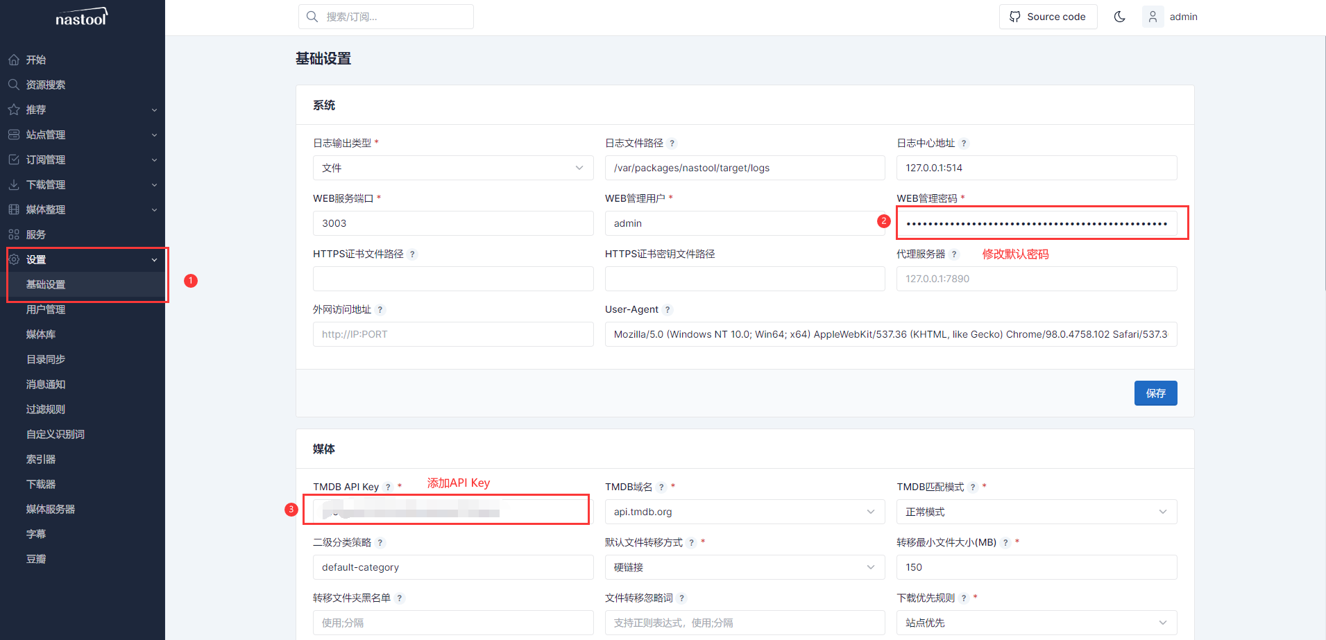 安装完成以后打开nastool,用户名admin密码password,然后我们来配置nastool