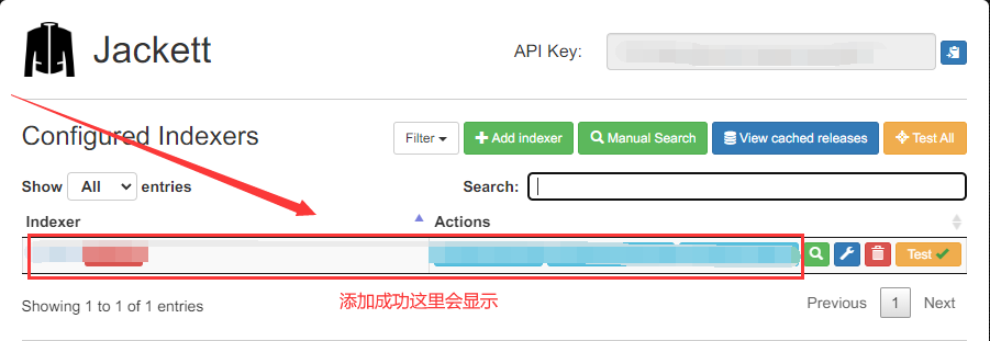 然后复制API Key填入索引器里