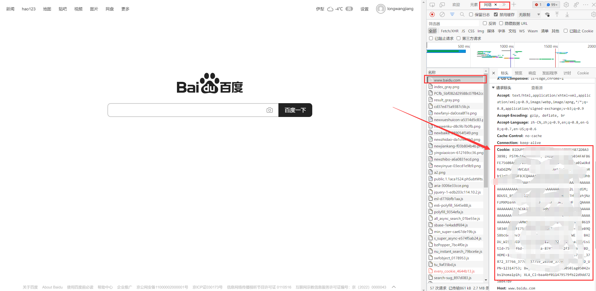 获取cookie的方法,基本上所有网站的cookie都是这么获取的,比如说百度。。