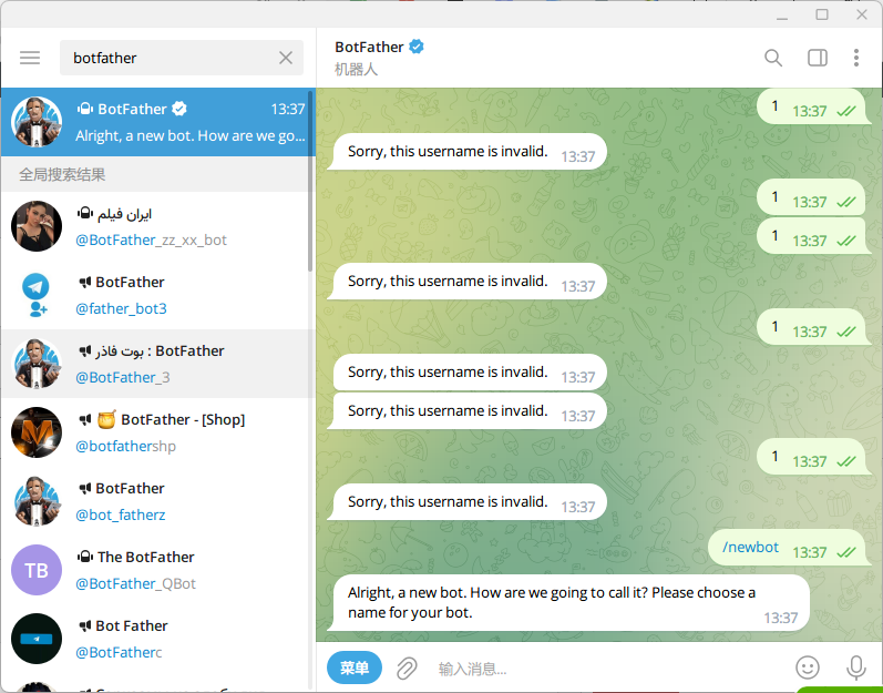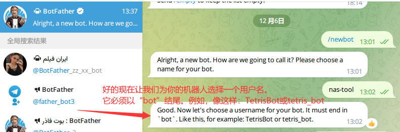 打开TG 搜索botfather 按提示申请bot,输入/newbot