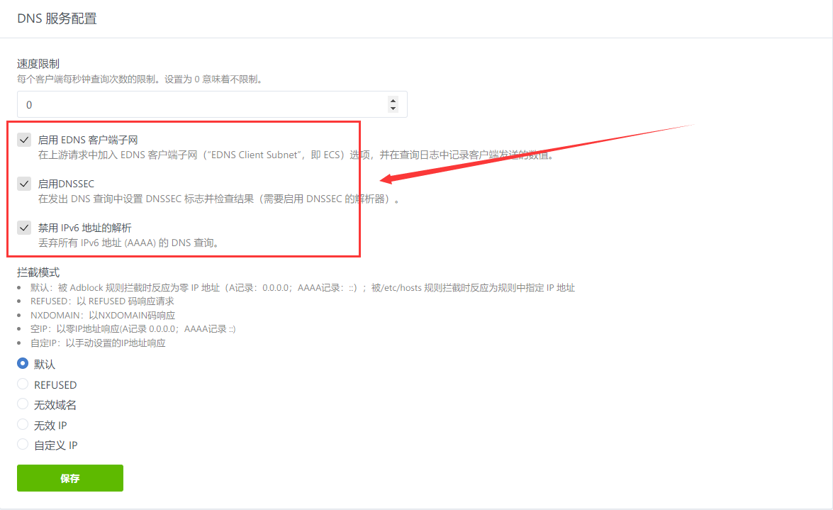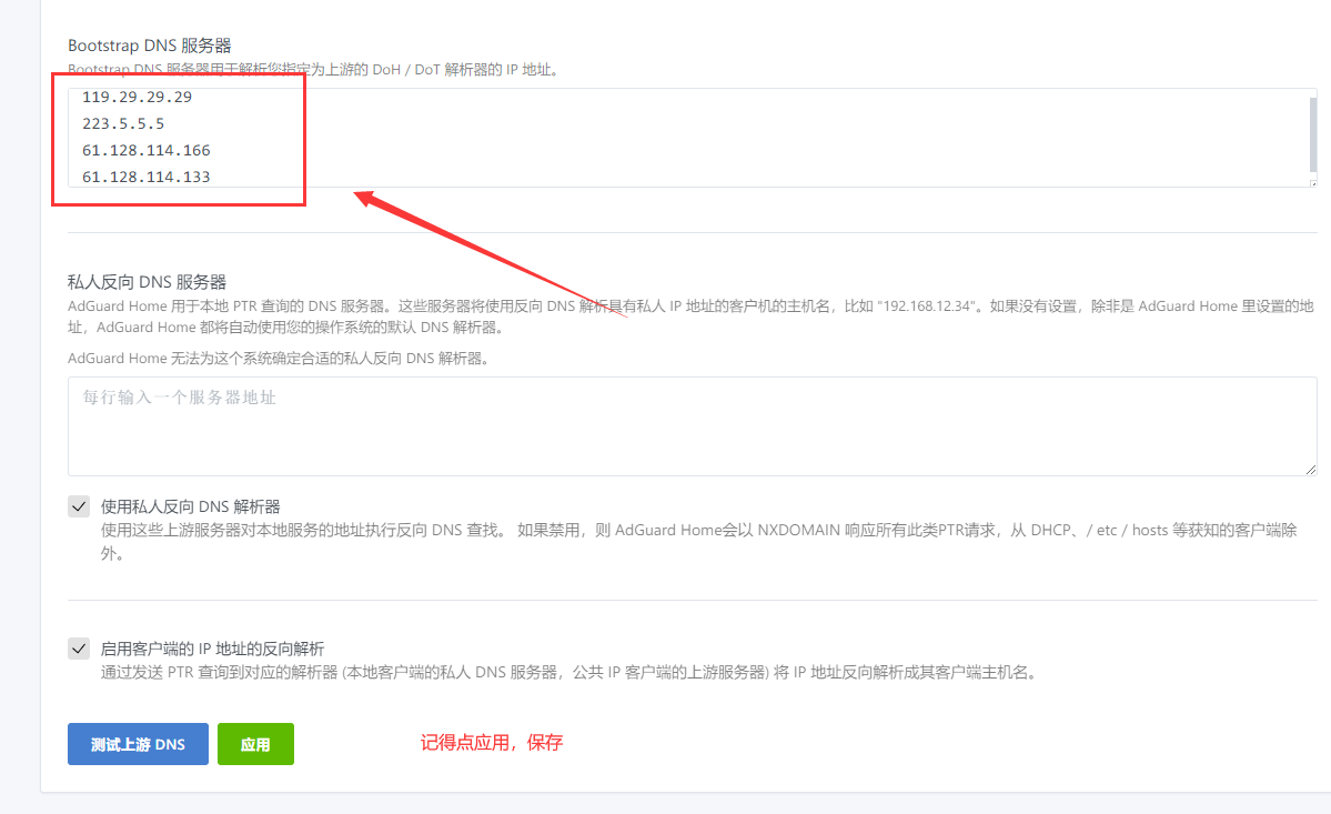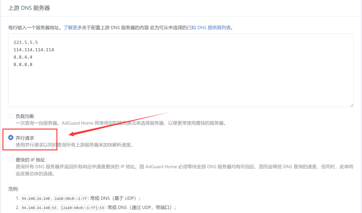 上游 DNS 服务器:配置默认了一个阿里的DNS,建议两组国内两组国外