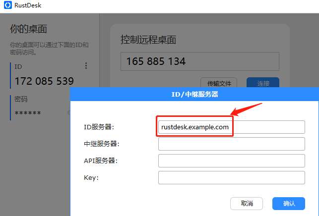但是,有一个风险点:如果其他人知道了该IP或域名部署了rustdesk服务器,那么他人也可以直接填写ID服务器,使用服务。