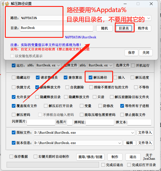 然后用个打包程序打包就行了,我用的单文件制作工具,一定要修改解压路径,否则域名、ID和密码不会生效!