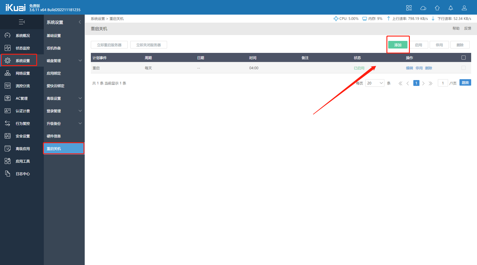进入openwrt管理页面,找到“系统-计划任务”,编辑命令行,点击“提交”