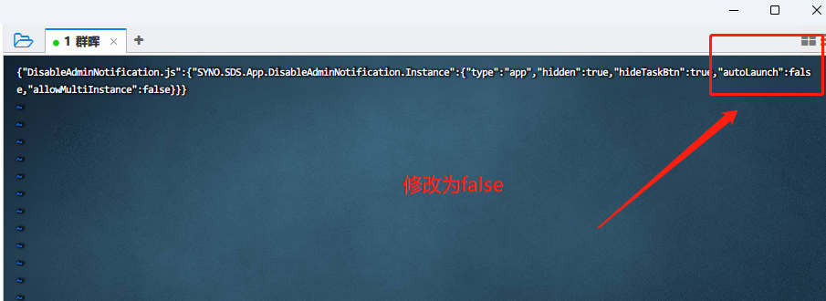 进入/usr/syno/synoman/webman/modules/DisableAdminNotification文件夹,使用vi config命令编辑config,修改完成后按esc然后输入:wq!保存。