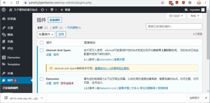 我们首先在这个页面下载插件到本地,https://cn.wordpress.org/plugins/all-in-one-wp-migration/