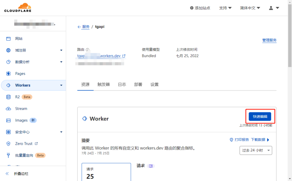 创建完成后,点击刚创建的Worker,再点击快速编辑