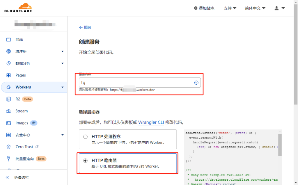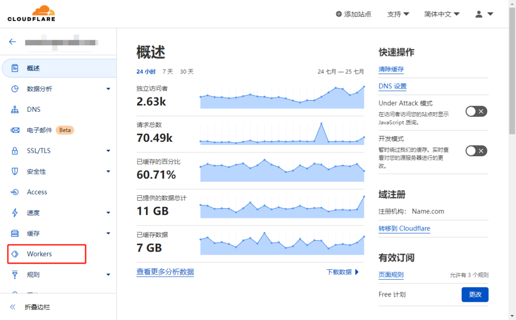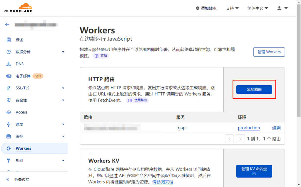 选择该域名下的Workers