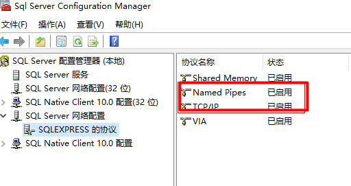 8.点击sql server网络配置,将Named Pipes 和TCP/IP 两个协议都设置启动