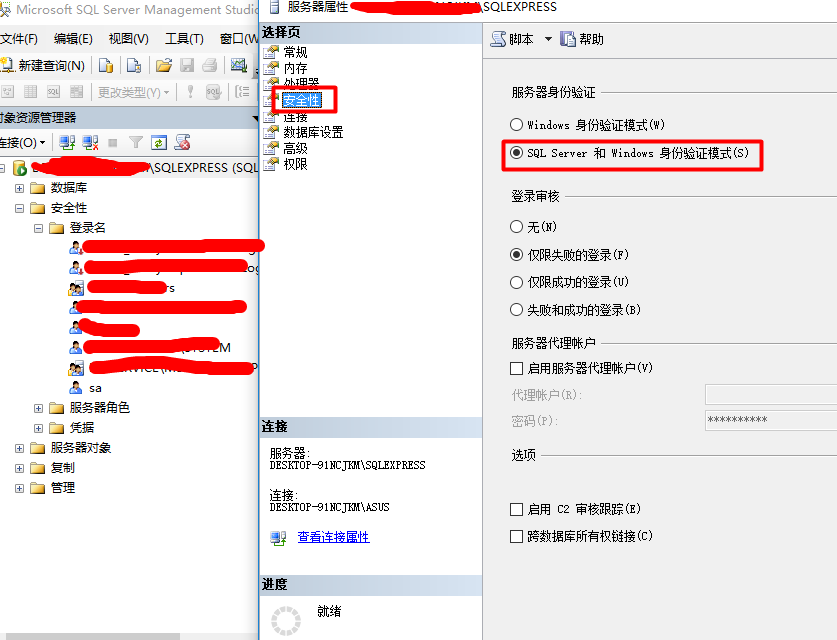 使用sa账户登录sql server 2008 的方法步骤如下: