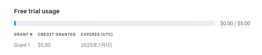 目前注册的OpenAI可以免费试用,一般都送了5美元信用额度,可以使用到2023年7月1日,如图: