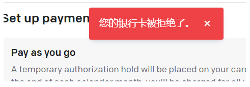 错误提示:您的银行卡被拒绝了。