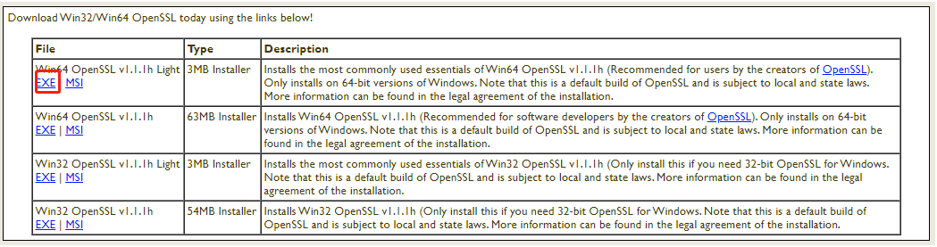 安装openssl添加环境变量,http://slproweb.com/products/Win32OpenSSL.html