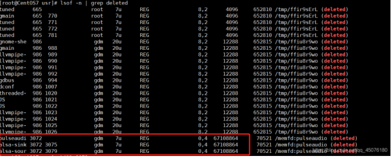 首先使用 lsof -n |grep deleted 命令查看一下已删除、但空间却没有释放的进程