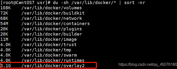 发现overlay2这个文件过大,也确定这个文件无用后 ,使用rm -rf 执行删除后,再次使用 df -h 查看磁盘空间