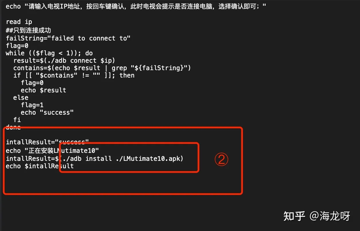 - 序号①代表了连接电视的adb命令