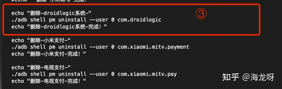 - 序号③代表了删除应用的adb命令