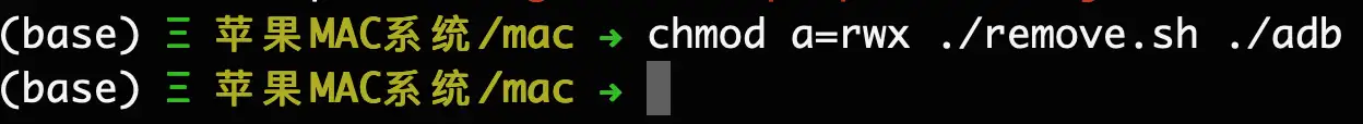 在terminal中输入chmod a=rwx ./remove.sh ./adb,目的是为了将其变为可以执行的文件。