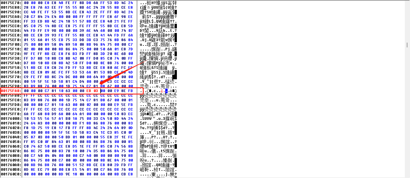 3、(00175FA0)63 00 00 01 00 00 00 E9 01 00--》EB 03