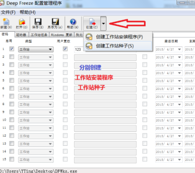 以上三步是安装激活管理程序,是安装在控制端的电脑上的。如果想对客户端电脑的冰点实现集中管理和控制,还要先创建种子程序DFWksSeed和工作站安装程序Dfwks,如果不需要集中管理,可只创建工作站安装程序DFWks。