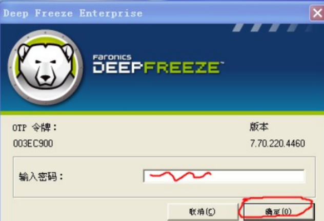 1.在任务栏(电脑右下角)找到Deep Freeze图标,按住Shift键不放,双击图标,即可打开登录窗口。