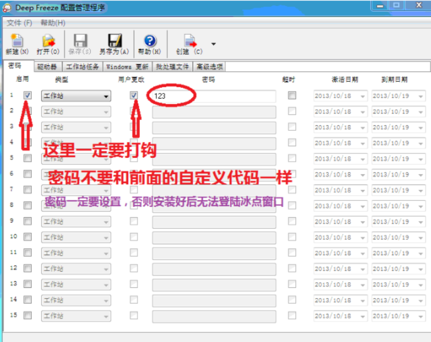 下图:切记在“123”处设置密码并一定要记住,否则将无法登陆。