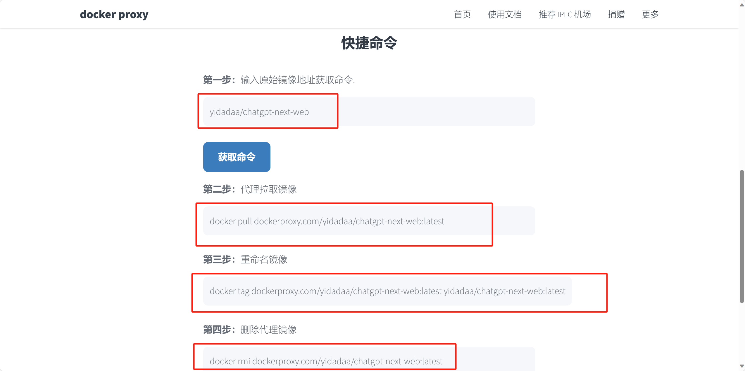 比如说我们这个docker镜像是 yidadaa/chatgpt-next-web,我们就需要这四步