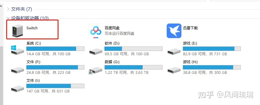 启动Swtich后,将电脑和Swtich使用USB数据线连接好,再点击Switch上的相册,选择,DBI,再选择【启动MTP服务】。电脑上就能看到Switch的盘符。
