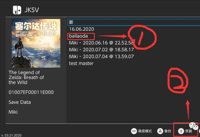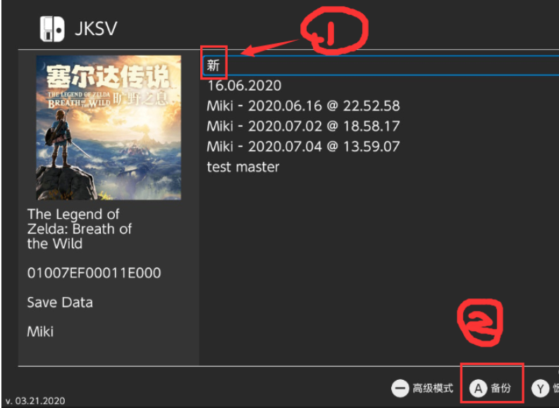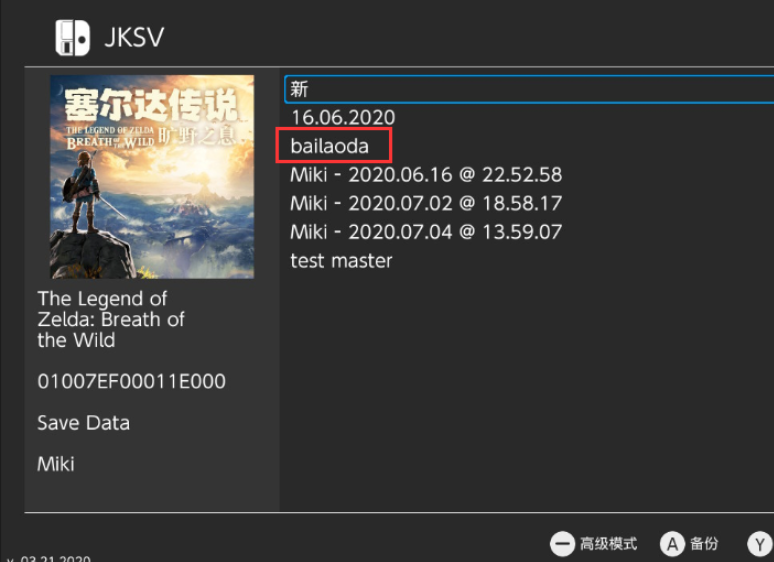 我这里就试着备份塞尔达