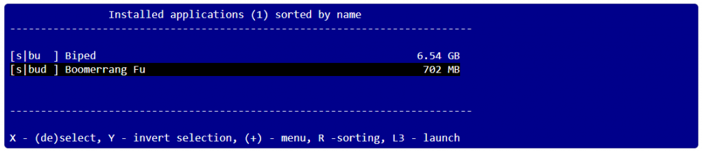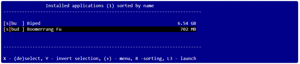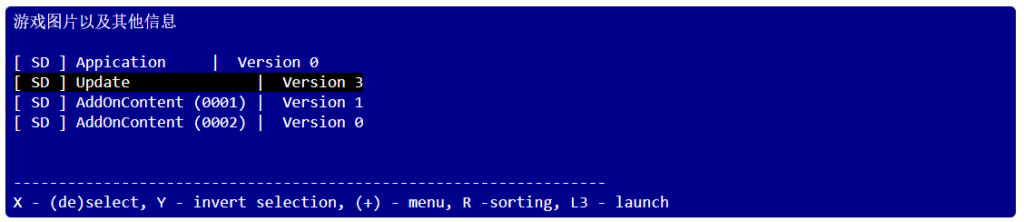 - X 键 是选中或取消选中,Y 键 是反选,+ 键 是调出菜单,R 键 是排序,左摇杆按下是运行游戏