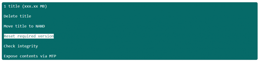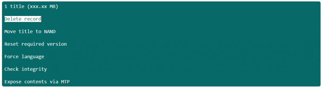 - Move title to NAND 表示将本体、补丁或 dlc 移动到机身存储