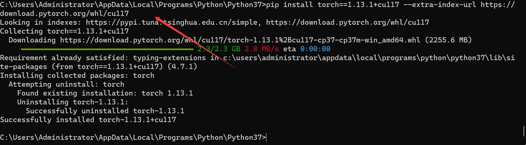 pip install torch==1.13.1+cu117 --extra-index-url https://download.pytorch.org/whl/cu117