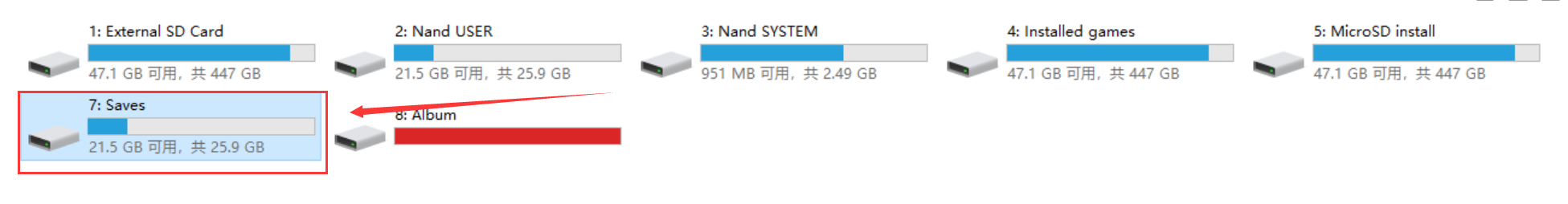 进入Switch驱动器之后有SWITCH里的各个分区, 我们选择Saves分区