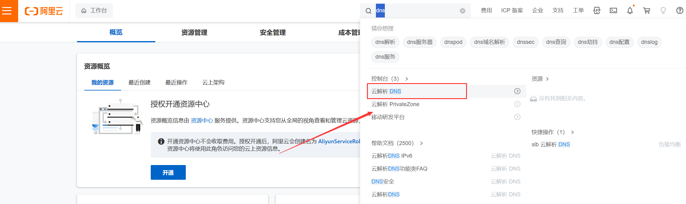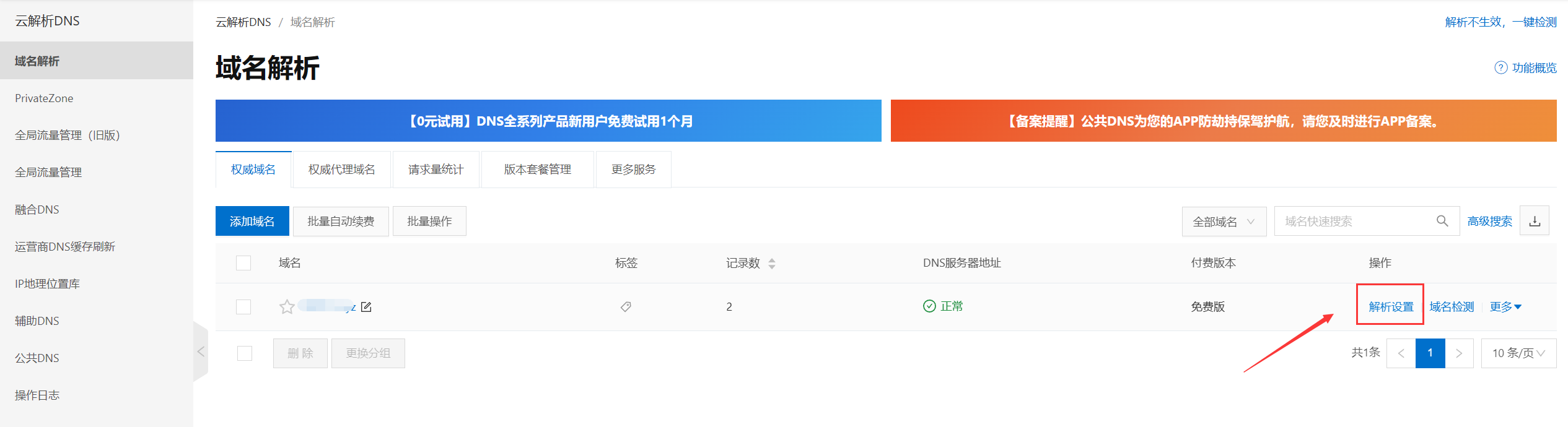 2、搜索云解析dns进入解析页面
