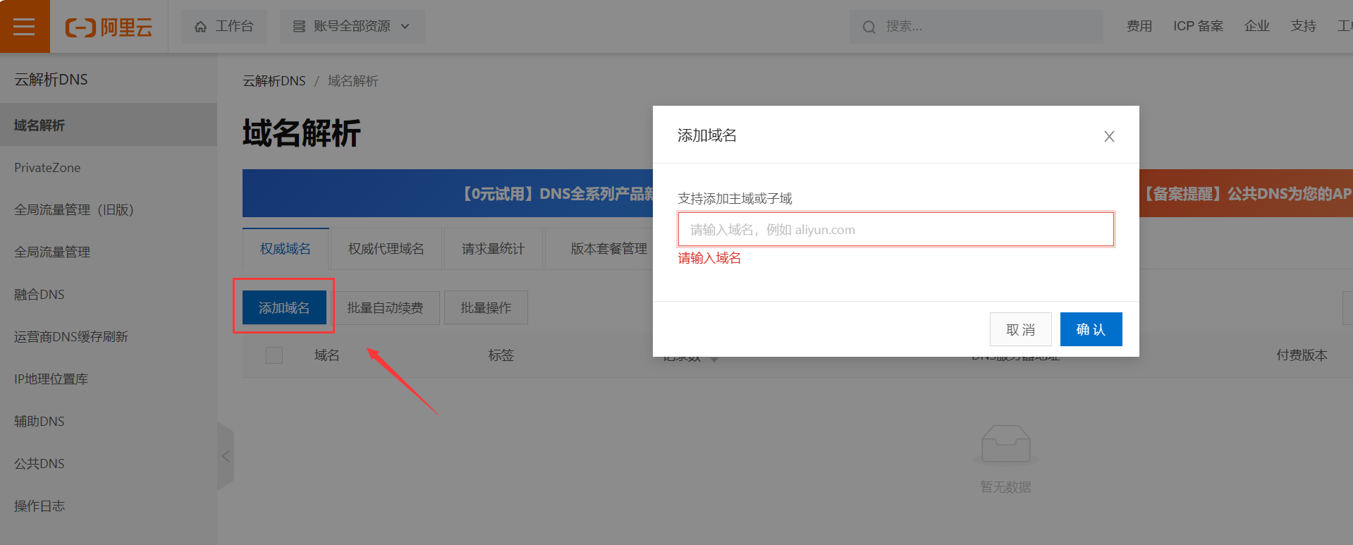 添加域名