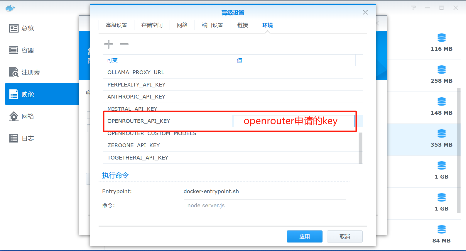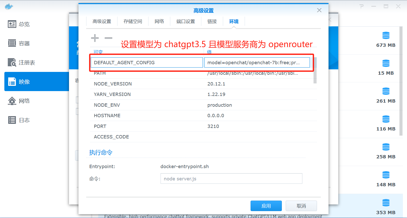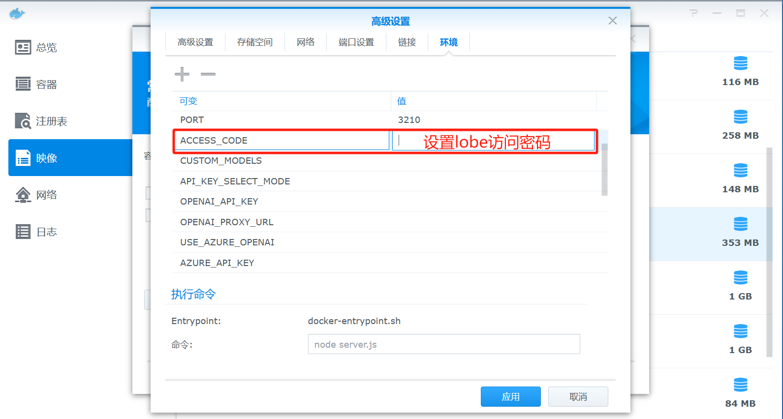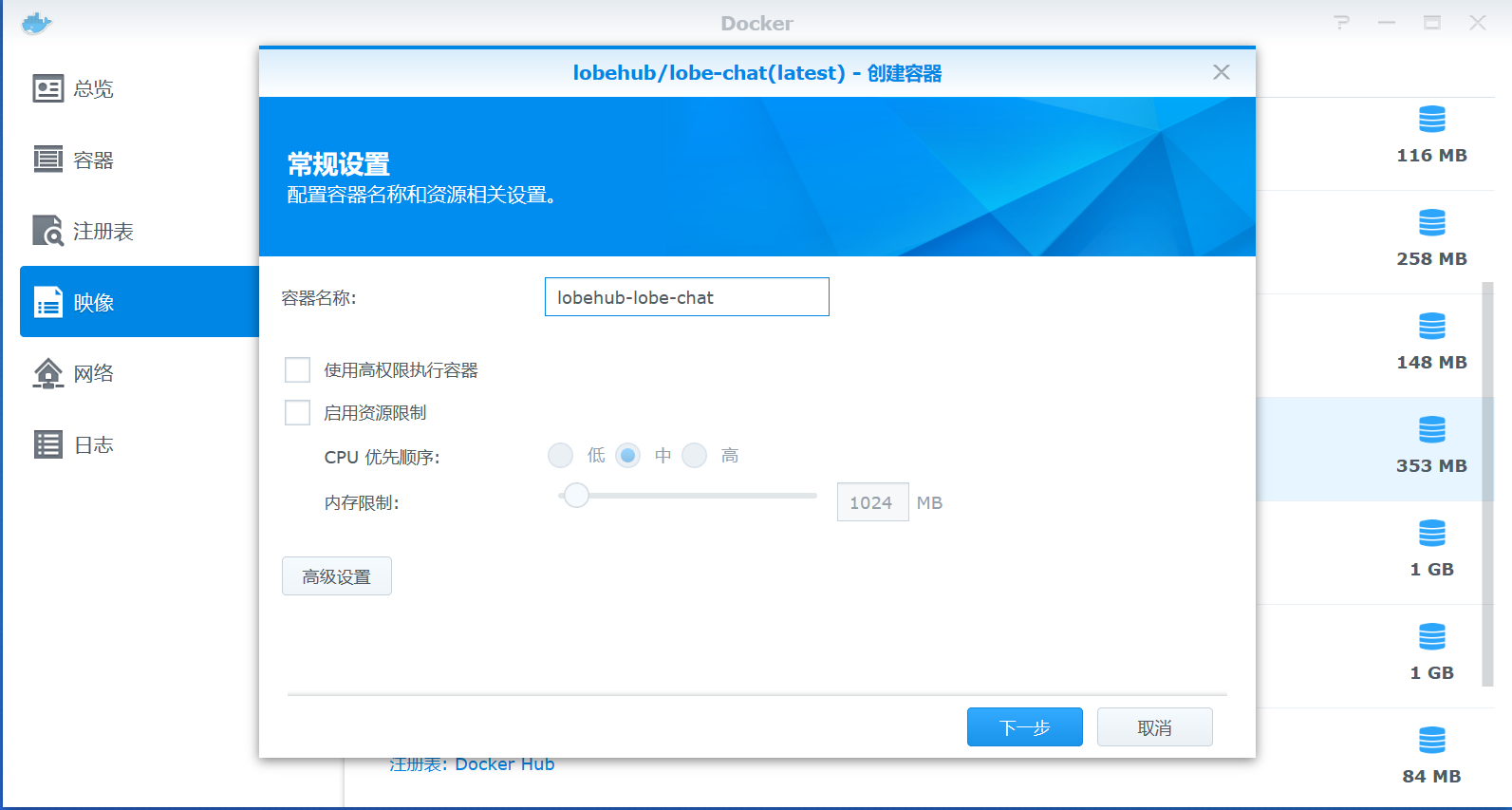 打开群晖的docker,注册表搜索lobe-chat并双击下载