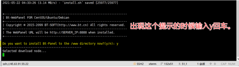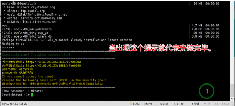 然后会自动安装宝塔面板到你的服务器,继续等待即可。