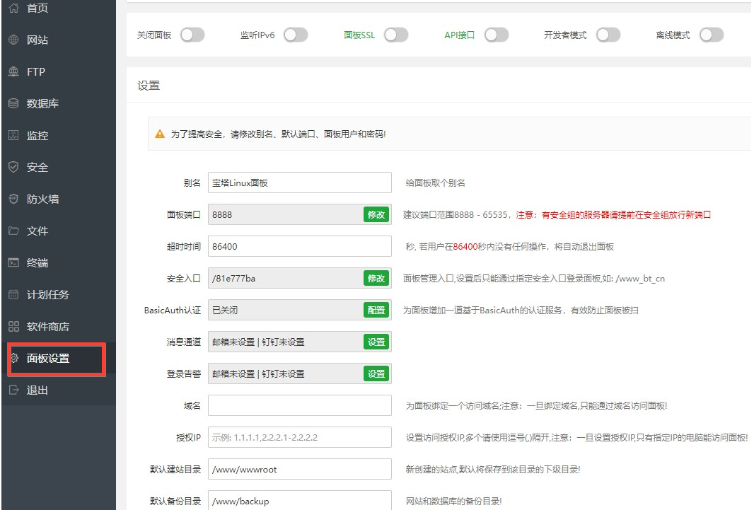 宝塔面板安全设置