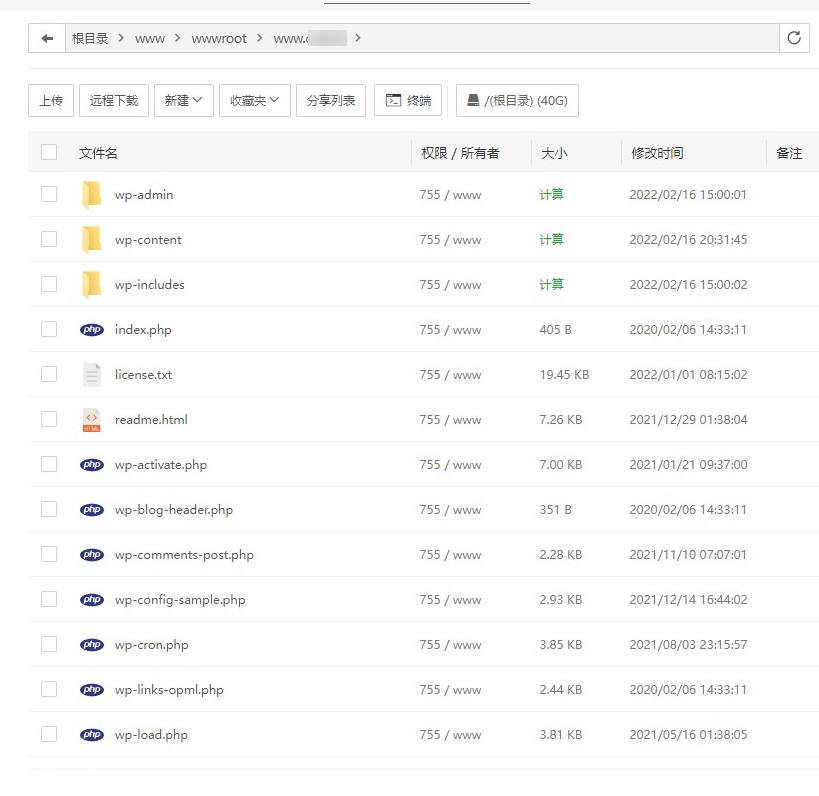 双击解压,把WordPress目录下得所有文件剪切到自己网站的根目录
