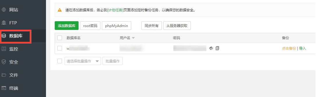 点现在就开始,然后到宝塔面板里找数据库的内容。