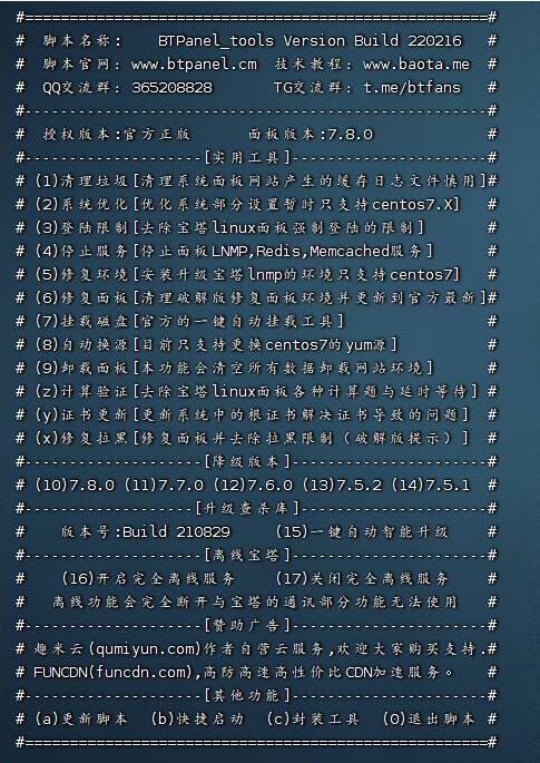 目前7.8版本的宝塔面板必须要绑定账号了,所以完美的解决方案是降级到7.7,使用大神的开源工具箱